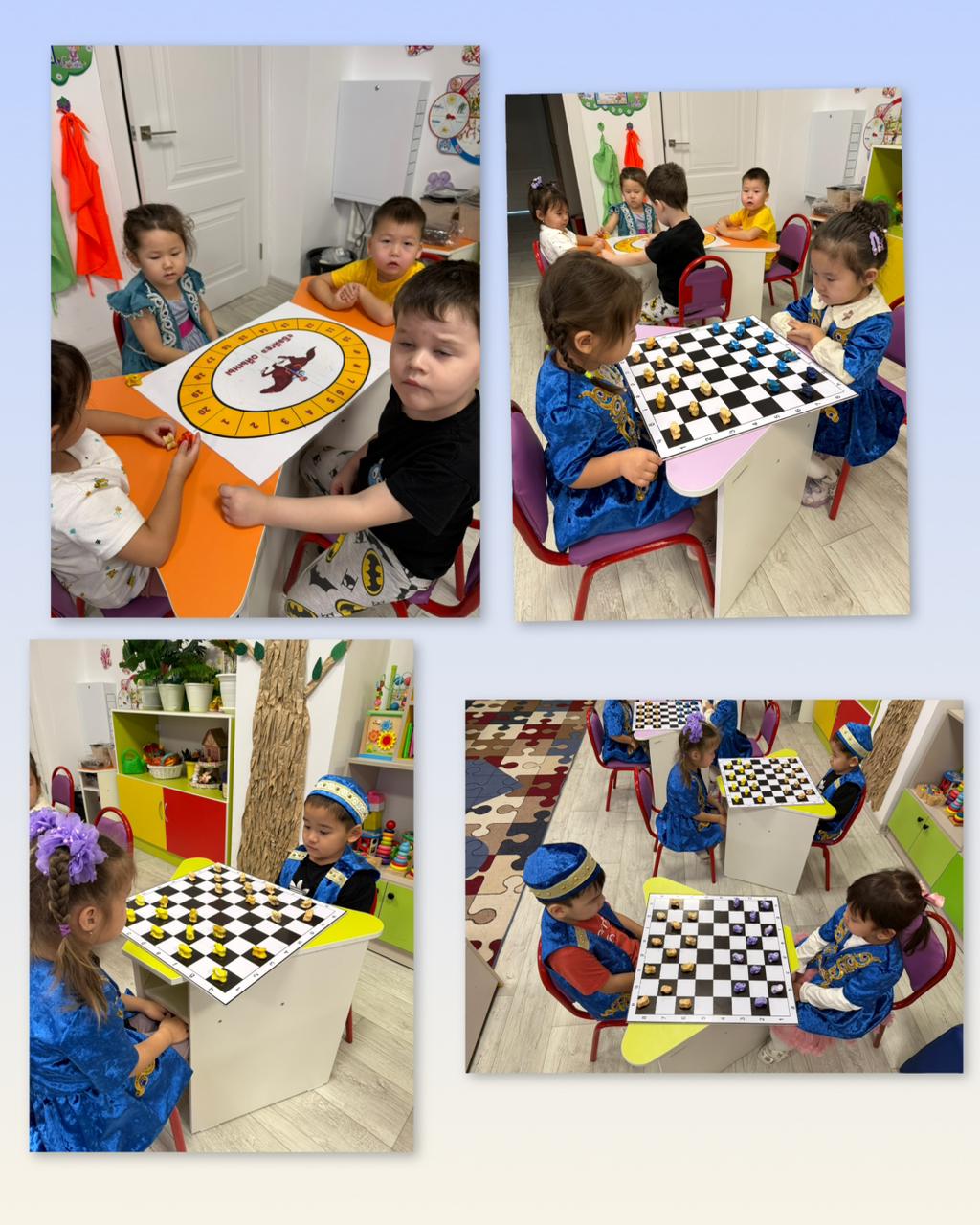 «Адал азамат» біртұтас тәрбие бағдарламасы негізінде аралас «Балапан» тобында балалармен асықтармен шахмат ойыны және үстел үсті «Бәйге» ойыны ойнатылды.