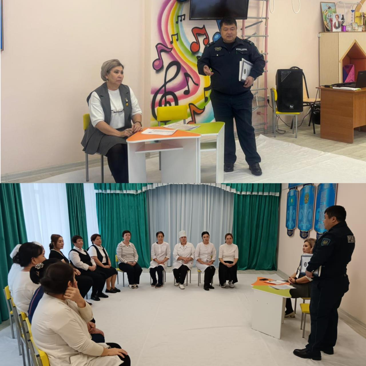 Балабақшада қызметкерлерге арналған түсіндіру жұмысы өткізілді. Іс-шараға Алға ауданы ПБ ҚҚБ УПИ полиция майоры Қ. С. Ермекбай және балабақша меңгерушісі Л. Б. Курманова қатысып, қазіргі таңда жиі кездесетін алаяқтық түрлері, олардың алдын алу жолдары және алданудың салдары туралы кеңінен ақпарат берді.