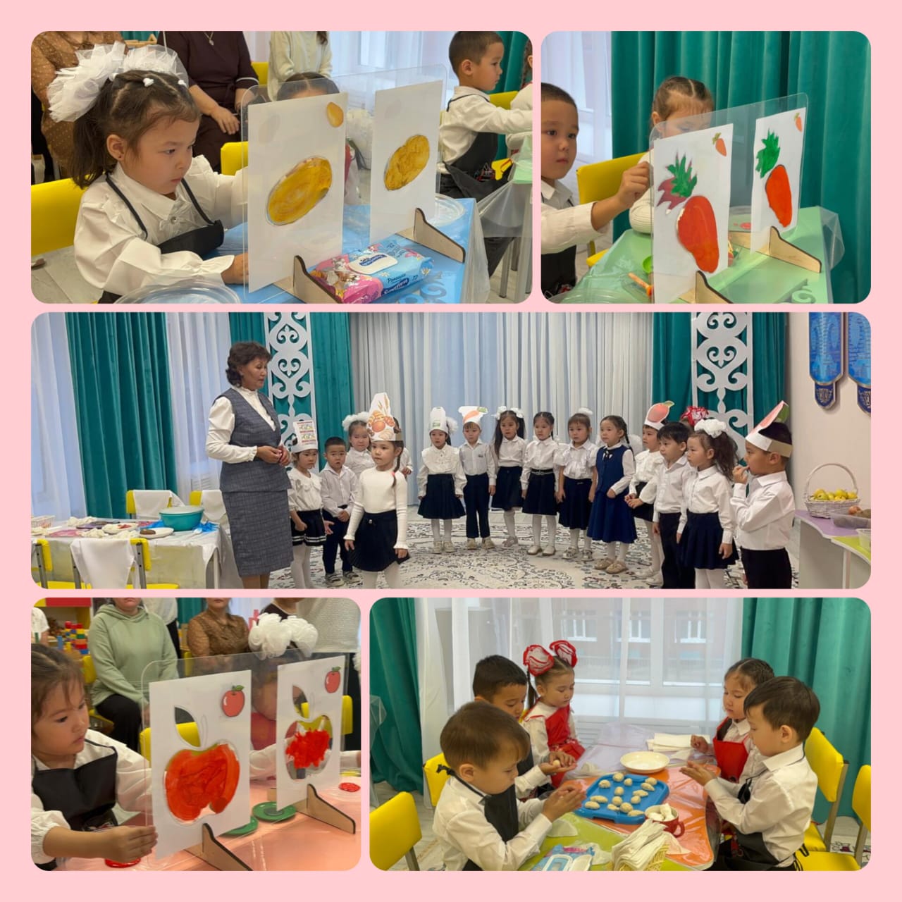 20.11.2025 жыл «Болашақ» Бестамақ балабақшасының ересек «Балдырған» тобында Қазақ тілінен «Азық - түлік» тақырыбында ашық іс - әрекеті өткізілді. Балалар тағам түрлерімен танысып, ертегі сахналап,ойын арқылы білімдерін толықтырды. Іс - әрекет барысында мнемокесте арқылы тақпақ жаттап, артикуляциялық жаттығу жасап, топқа бөлініп шығармашылық жұмысқа белсене қатысты.